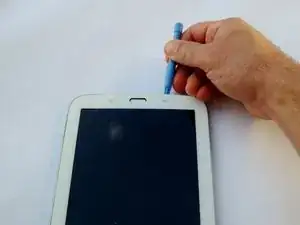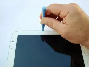 Вставьте пластиковый инструмент между серебристой окантовкой и экраном, начиная с верхней части планшета.