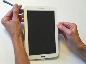 Используя пластиковый инструмент для вскрытия, начните в месте, где находился S-Pen, и аккуратно подденьте угол.