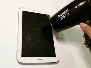 Переверните планшет лицевой стороной вверх. Установите тепловую пушку или фен на средний режим нагрева.