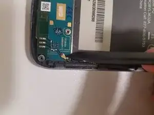 С помощью пластикового инструмента снимите нижнюю плату, так как она удерживается только клеем.