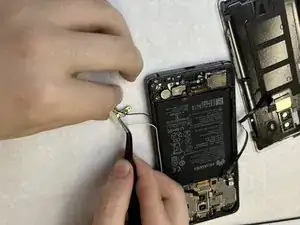 С помощью пинцета снимите металлический щит, закрывающий разъём датчика отпечатков пальцев.