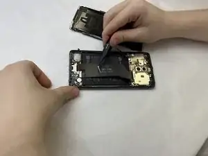Поднимите заднюю крышку присоской, пока не сможете вставить плоский конец лопатки.