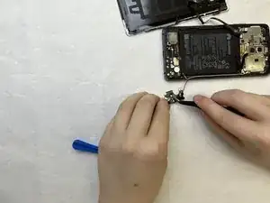Отключите кабель датчика отпечатков пальцев лопаткой.