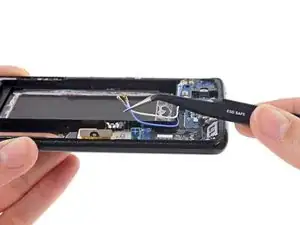 С помощью пинцета удалите оставшиеся куски клея с шасси телефона. Затем очистите места склеивания изопропиловым спиртом высокой концентрации (не менее 90%) и безворсовой салфеткой, чтобы подготовить поверхность для нового клея.