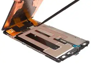 Разрежьте клей под экраном, отсоедините разъёмы и снимите LCD-экран. Больше деталей вы увидите в руководстве по замене LCD-экрана Samsung Galaxy Note 4: Samsung Galaxy Note 4 LCD screen replacement guide.