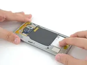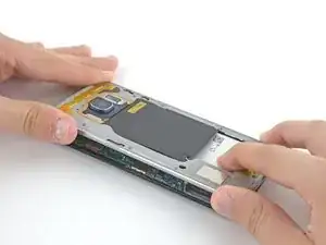 Нажмите на заднюю часть аккумулятора и поднимите края средней рамки, чтобы отделить её от остальной части телефона.