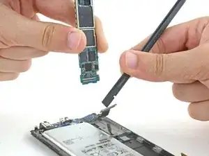 Поднимите дочернюю плату вверх и от корпуса телефона, чтобы снять её.