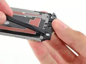 Осторожно проведите пластиковой лопаткой вдоль левой внутренней стороны внутренней рамки, чтобы отделить три белых пластиковых защёлки.