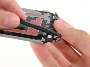 Удалите один винт Phillips #000 длиной 2,5 мм, который закрепляет дочернюю плату порта Micro-USB к середине корпуса.
