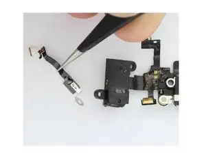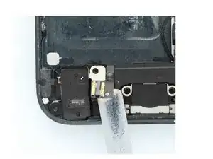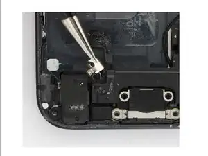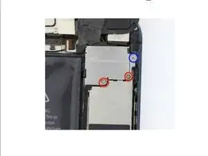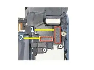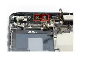 Начиная с верхней части телефона, снимите два винта Phillips, удерживающие фиксирующую пластину вспышки камеры.