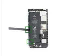 ПРИМЕЧАНИЕ. Аккумулятор зафиксирован клеем. Немного нагрейте заднюю часть корпуса и используйте нейлоновую лопатку, чтобы помочь поддеть аккумулятор и оторвать его от корпуса.