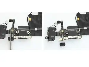 Отделите оба разъема: коннектор кнопки «Домой» и заземление фильтра аудио от громкоговорителя.