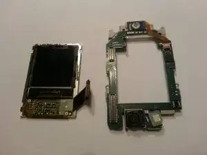 Поднимите плату из корпуса, начиная с верхней части. Продолжайте сгибать её вперед, чтобы получить доступ к шлейфу, который всё еще соединяет их.