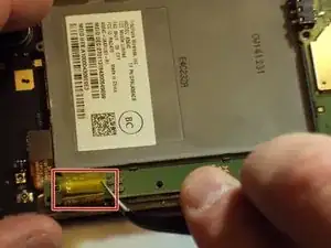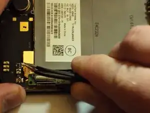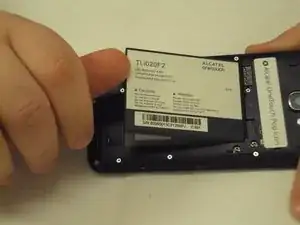 Используйте ноготь, чтобы поднять аккумулятор из корпуса телефона.