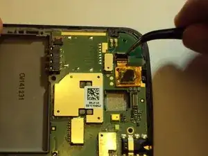Аккуратно отсоедините антенну от материнской платы с помощью пинцета.