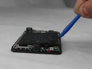 Вставьте инструмент для вскрытия между аккумулятором и корпусом телефона.