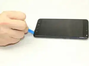 Осторожно вставьте инструмент для вскрытия между телефоном и задней крышкой.