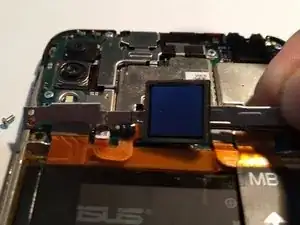 Экран удерживается клеевой лентой. Действуйте осторожно и терпеливо — его можно отсоединить. При необходимости можно временно установить заднюю крышку для создания дополнительного рычага.