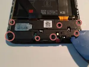 Удалите семь винтов, закрепляющих пластиковую деталь динамика, и подденьте её.