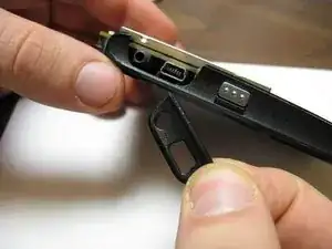 Вставьте ноготь или плоский конец лопатки в эту выемку, затем поднимите верхнюю часть аккумулятора, чтобы извлечь его из телефона.