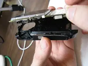 Если детали или чёрный защитный порт выпали при снятии передней крышки, всё равно отложите их. Обратите внимание, что две части клавиатуры могут остаться соединёнными вместе.