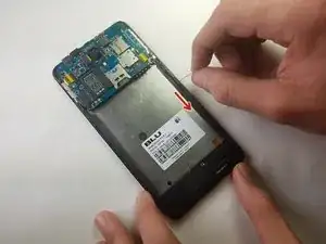 Извлеките аккумулятор из телефона с помощью пластикового инструмента для поддевания или пальцами.
