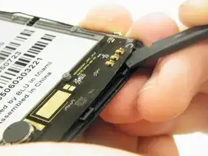 Снимите плату динамика с нижней части телефона, осторожно поддев её лопаткой и приподняв.