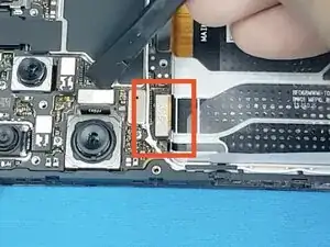 Отключите шлейф экрана, выделенный на картинке, и подготовьтесь протянуть его через телефон на следующем шаге: