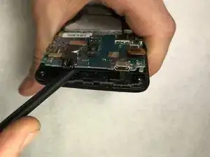 Используйте металлическую лопатку, чтобы освободить все защелки вокруг телефона. Эти защелки используются для крепления передней и задней панелей телефона.