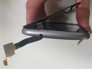 Когда экран освободится от клея, проведите гибкий шлейф через среднюю часть корпуса.