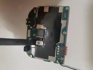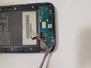 С помощью пластиковой лопатки снимите нижнюю плату, начав с извлечения вибромотора и двигаясь по плате.