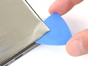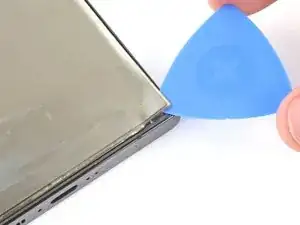 Заведіте открывающую лопатку под нижний угол дисплейной панели и поднимите, чтобы отделить клейкое вещество.