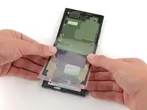 Проверьте нижнюю половину рамки на наличие кусочков тонкого пластика, оставшегося от экрана.