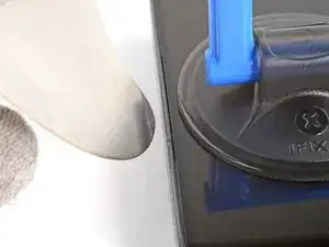 Поднимите присоску с сильной, стабильной силой и опустите iFlex, чтобы он зашёл под переднее стекло, между стеклом и панелью дисплея. Большая часть переднего стекла может отделиться — это нормально. Вы можете увидеть кончик iFlex под стеклом.