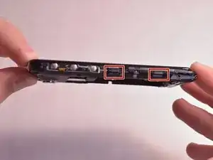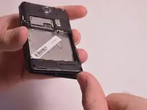 Вставьте пластиковый инструмент для вскрытия в паз между нижней частью телефона и аккумулятором.