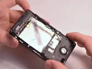 Проведите пластиковым инструментом для вскрытия снизу телефона к верху.