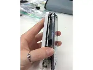 Используйте пластиковую открывалку, чтобы отсоединить переднюю часть телефона от задней.