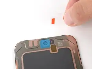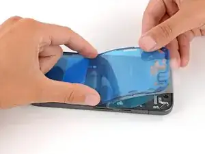 Используйте пальцы или пинцет, чтобы убрать пластиковые подложки и ленту с тыльной стороны экрана.