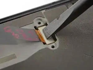 Используйте острый край лопатки, чтобы аккуратно поднять разъём кабеля дисплея из его гнезда на материнской плате.
