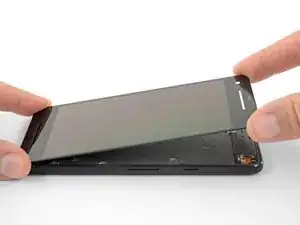 Пока не пытайтесь полностью отделить дисплей — хрупкий ленточный кабель всё ещё соединяет его с материнской платой телефона.