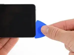 Проведите лопаткой вверх по правому краю телефона, чтобы отделить клей дисплея.