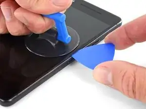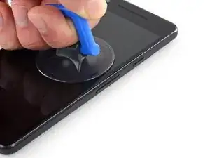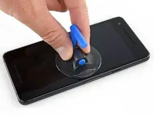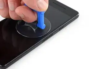 На этом этапе потребуется значительное усилие и терпение. Если возникнут трудности, покачивайте присоску и экран, чтобы ослабить клей, либо подогрейте его с помощью iOpener, тепловой пушки или фена.
