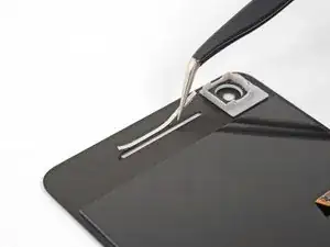 На этом шаге временно устанавливается новый экран, чтобы правильно совместить его с кронштейном фронтальной камеры при склеивании.