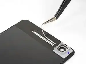Если на заменяемом дисплее не установлены решётки динамика или скоба фронтальной камеры, аккуратно снимите эти детали со старого дисплея. Далее следуйте инструкции, чтобы установить их на новый экран.