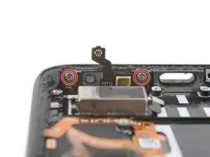 Используйте отвёртку T3 Torx, чтобы выкрутить два винта длиной 2,4 мм, удерживающих узел фронтальной камеры и датчиков.