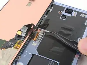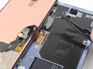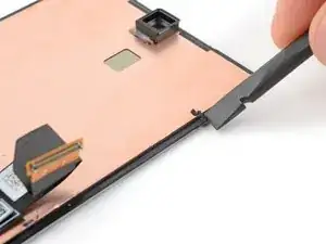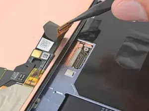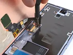 Используйте острый конец лопатки или ноготь, чтобы поддеть и отключить пресс-коннектор экрана.