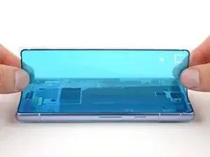 Если уплотнитель переднего датчика прилип к экрану, верните его на место на датчике в углублении рамки. Ориентируйте уплотнитель так, чтобы меньший вырез был ближе к фронтальной камере.