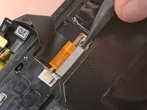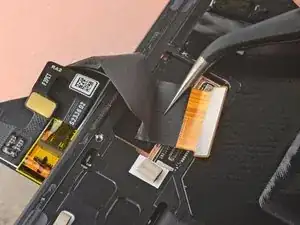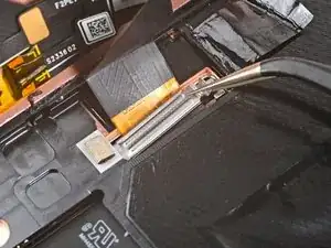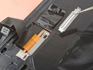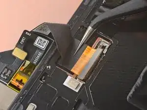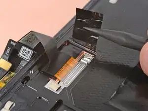 Используйте пинцет или пальцы, чтобы вытащить кабель экрана из-под выступа на краю рамы.