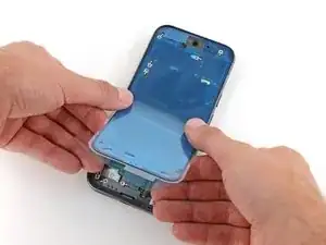 Используйте пинцет или пальцы, чтобы удалить два оставшихся синих слоя с обратной стороны экрана.