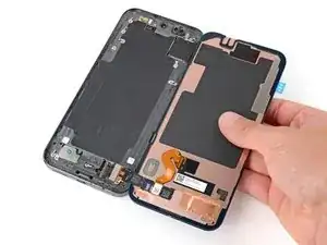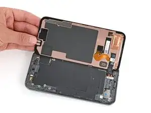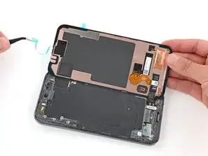 Используйте пинцет или пальцы, чтобы удалить два оставшихся слоя с рамки. Чтобы удалить правый слой, потребуется аккуратно приподнять экран.